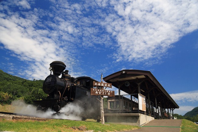 丸瀬布森林公園いこいの森 (2015年7月) 2015年の夏は、道北巡り、白老をスタートし、増毛から羽幌、豊富と北上し、宗谷岬を回って、枝幸を経て丸瀬布。北上過程では、左手には常に日本海に浮かぶ利尻富士が見える絶好のお天気でした。ここ丸瀬布ではマウレ山荘に泊まって、存分に雨宮21号撮影に励みました。