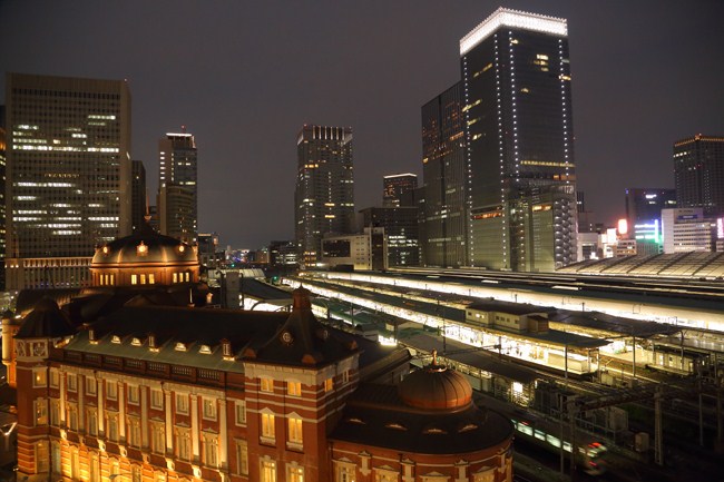 東京駅 (2015年9月) Kitteビル屋上ガーデンからの眺め。リニューアルされたから初めて撮った東京駅です。発着する車両を見ているだけで、時間が経つのを忘れます。この日は曇天でしたが、晴れた黄昏の時間帯に再度撮ってみたいものですが、いつでも撮れる場所って、なかなか行かないものです。