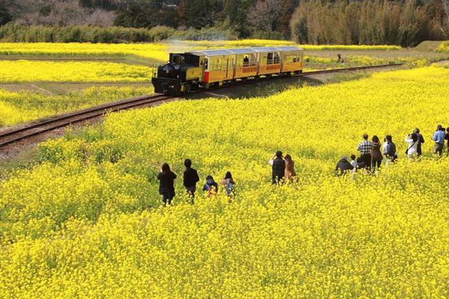 小湊鉄道 養老渓谷(2016年3月) およそ5年ぶりに、春爛漫の小湊鉄道。往々にして久しぶりに訪ねると、変わり果てた様を見ることが多い中、ここ小湊鉄道石神の撮影地は、 良い意味で見違えるほどの変貌ぶり。撮影者のための大きな駐車場ができ、皆で春を楽しむ場所になっていました。地元 の皆様のご協力あってのこと思いますが、大型バスが出入りするほど大勢の観光客 。鉄道撮影地が鉄ちゃんの場所から観光地になったプロセスを目の当たりにした感じです。春爛漫の光景が嬉しい一日でした。