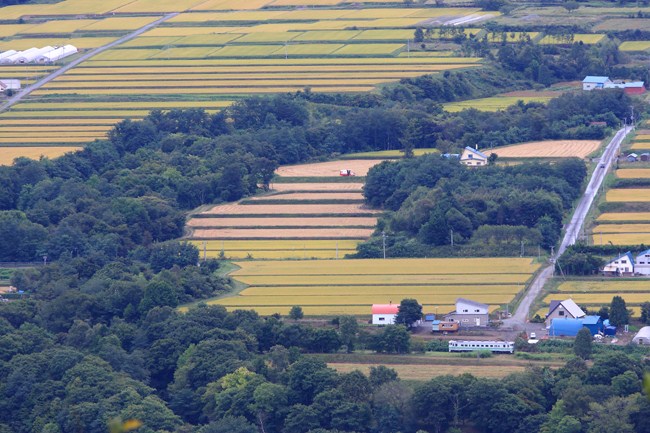 ユメミリカ、ナナツボシ。近年、北海道が米の名産地になり、芦別あたりも穀倉地帯に。でもスケール感は本州とは少し番いますね。(2012年9月)