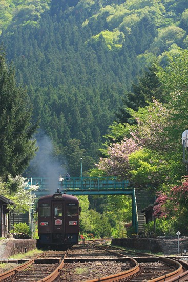 桜の次の季節。そんな雰囲気たっぷりの山間の駅。この列車に乗らないと次の列車までの1時間以上。でも乗らないでよかったなと思える1枚になりました。