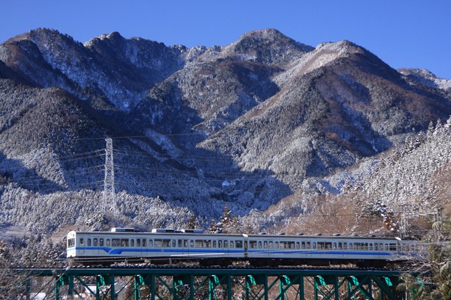 2日続けて秩父へ。快晴雪景色と101系(白)。