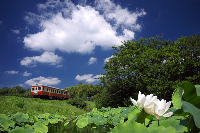 梅雨明け上総。夏空にキハ52、そして蓮の花。