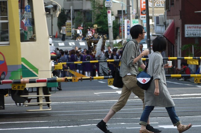 都電荒川線 向原 天祖神社の秋祭りの日は、踏切で張り付きです。