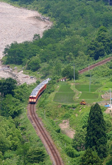 ロープを頼りに登った先には、冬とは異なる絶景が広がる。まだ淡さが残る初夏の緑に、待つ時間も苦にならない