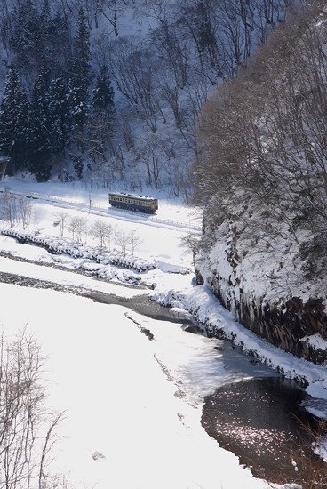 豪雪地帯。深い谷に真冬の晴れ間。貴重なシーンでした。