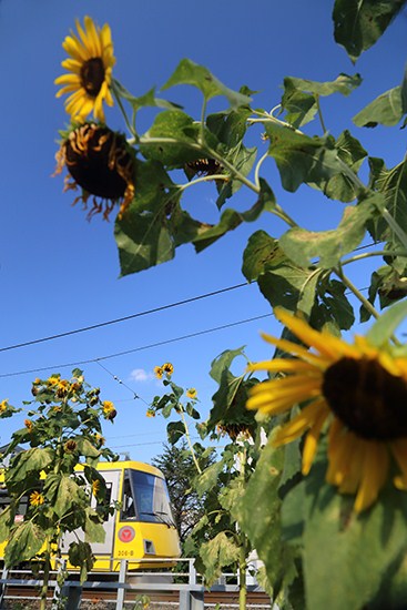 向日葵、晩夏の風景ですね。同系色がやってくるのを待って撮りました。