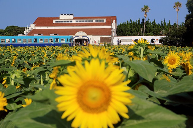 ひまわり&銚子電鉄 (犬吠 2018年8月) 長年、線路端の花々を追いかけていますが、これまでひまわりはロクな写真が撮れていませんでしたが、ようやくです。思い立ったら銚子電鉄。久しぶりに、しおさいにのって暑いけど、楽しい夏の1日でした。