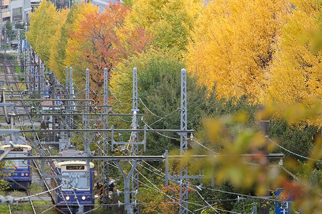 千登世小橋からの眺めが、少し変わりました。主役が7000形から7700形へ。例年以上に見事に色づいた明治通りの紅葉でした。