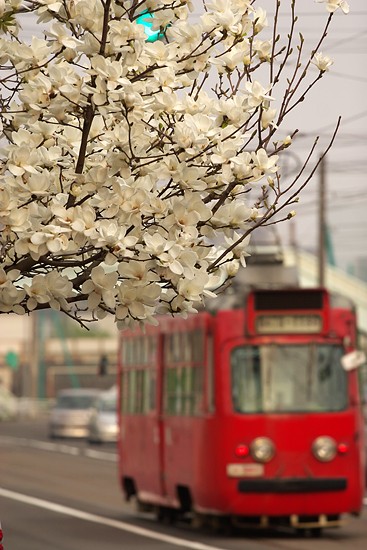 本州より2ヶ月遅れ 満開ハクモクレン 恋の町