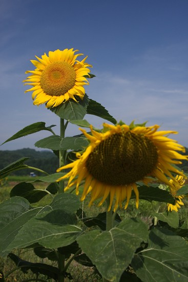 向日葵も、暑くて、たまらん。北国も夏は暑い。