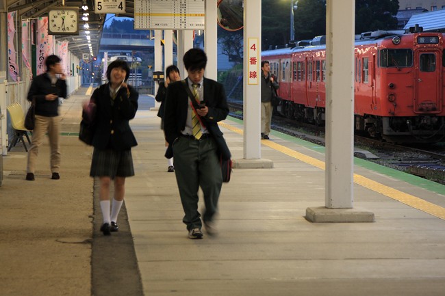 日も長くなり、衣替え間近の晩春北国の町。夏も続投決定、国鉄色。